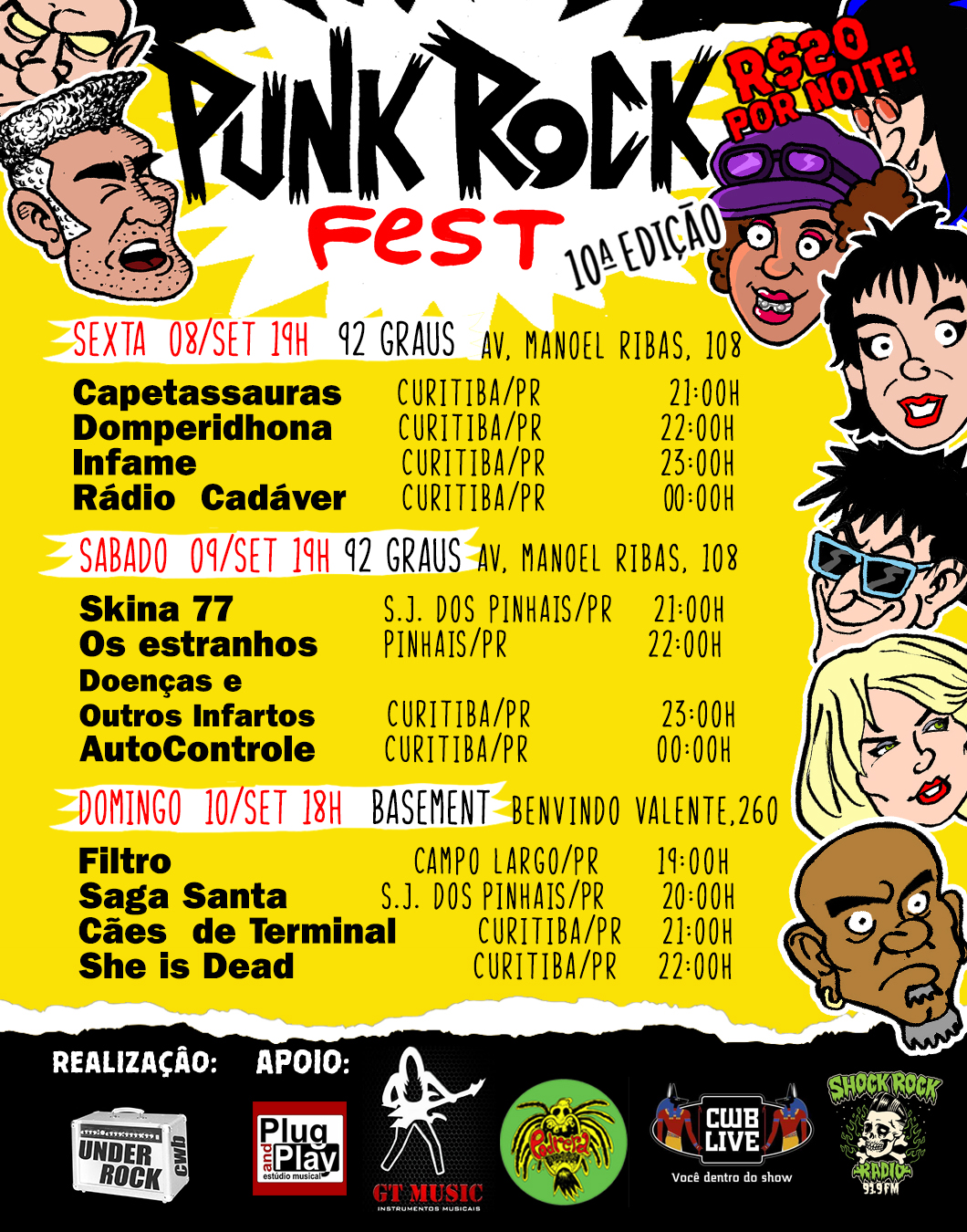 Neste ano, o lineup do evento, que tem realização da Under Rock Cwb, terá shows de 12 bandas de Curitiba e da Região Metropolitana, justamente com a intenção de valorizar a produção autoral paranaense. “A ideia é unir forças e se divertir, afinal, a Punk Rock Fest é uma iniciativa independente na trilha dessa vertente musical que radicalizou o mundo”, diz o idealizador do evento, o músico Wallace Barreto.