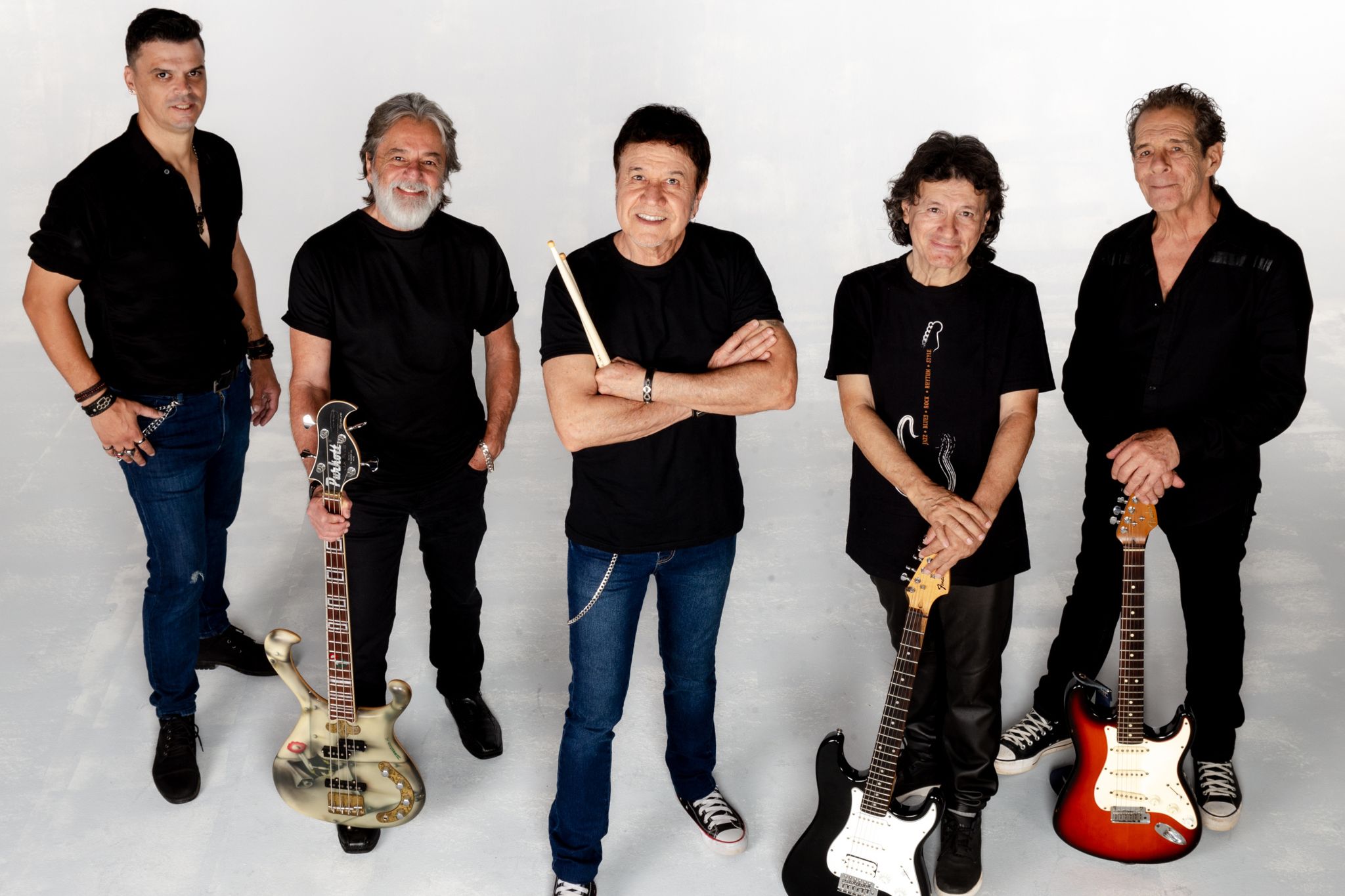 No show “Nossa Vida é Um Palco”, aulo Juk (baixo), Paulo Teixeira (guitarra), Alberto Rodriguez (guitarra), Pato Romero (bateria) e Willian Vox (vocal/violão) celebram os 50 anos de vida do grupo.