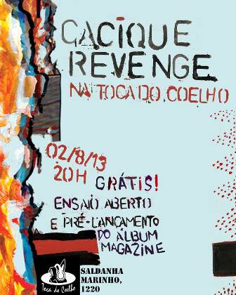 A banda Cacique Revenge do guitarrista e vocalista Cassiano Fagundes, ex-Magog, se apresenta na próxima sexta-feira na Toca do Coelho. O show será o pré-lançamento do novo álbum do grupo, “Magazine”.