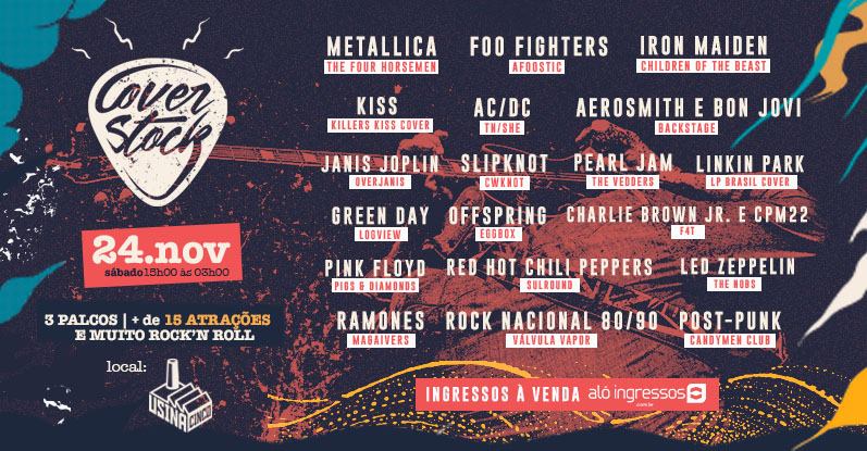 Será realizado no dia 24 de novembro (sábado), na Usina 5, a 1ª edição do Coverstock Festival. O evento reunirá 20 bandas cover que se apresentarão em três palcos. Entre as atrações estão os grupos Killer’s Kiss (Kiss), Children of the Beast (Iron Maiden), The Four Horsemen (Metallica), Pigs and Diamonds (Pink Floyd), Candyman Club (The Cure e The Smiths) e Linkin Park Brasil (Linkin Park).