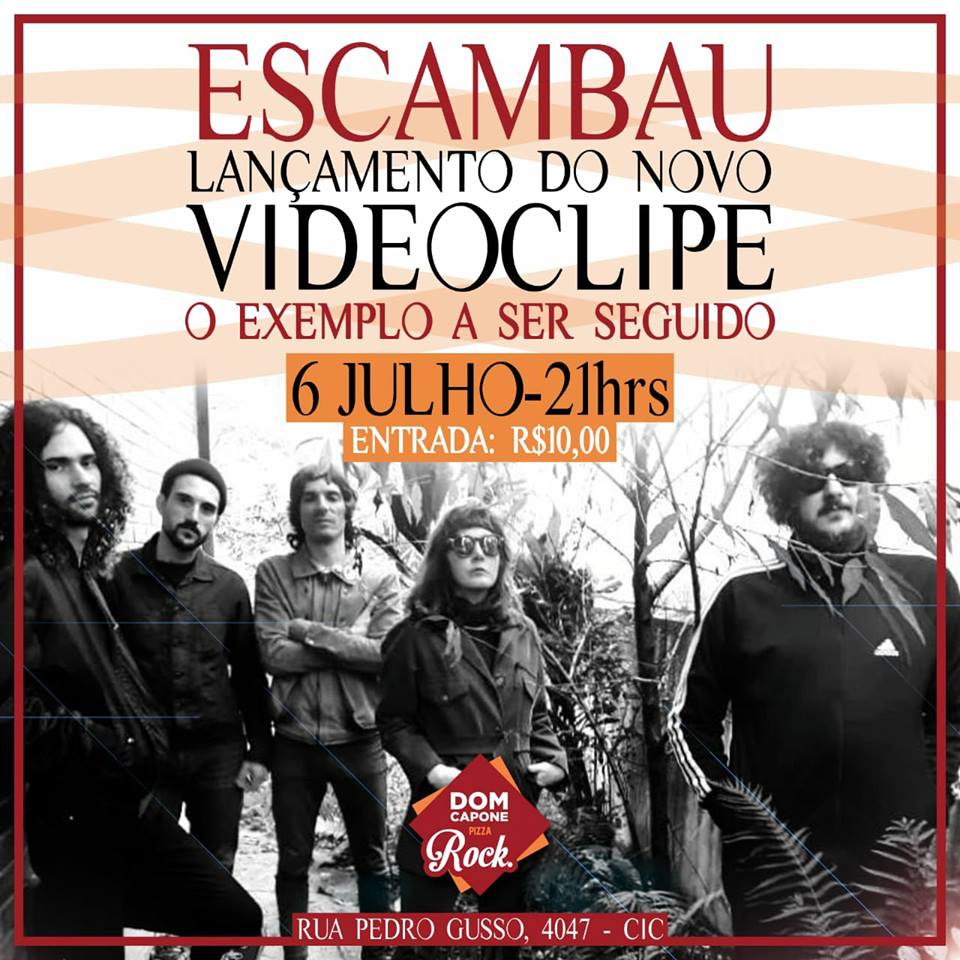 A banda curitibana Escambau se apresenta no dia 6 de julho no Dom Capone Pizza Rock. O show marca o lançamento do novo clipe do grupo, “O exemplo a ser seguido”. Os ingressos custam R$ 10 e podem ser adquiridos na hora. O show começa às 21h. O Dom Capone Pizza Rock fica na Rua Pedro Gusso, 4047, na Cidade Industrial de Curitiba (CIC).