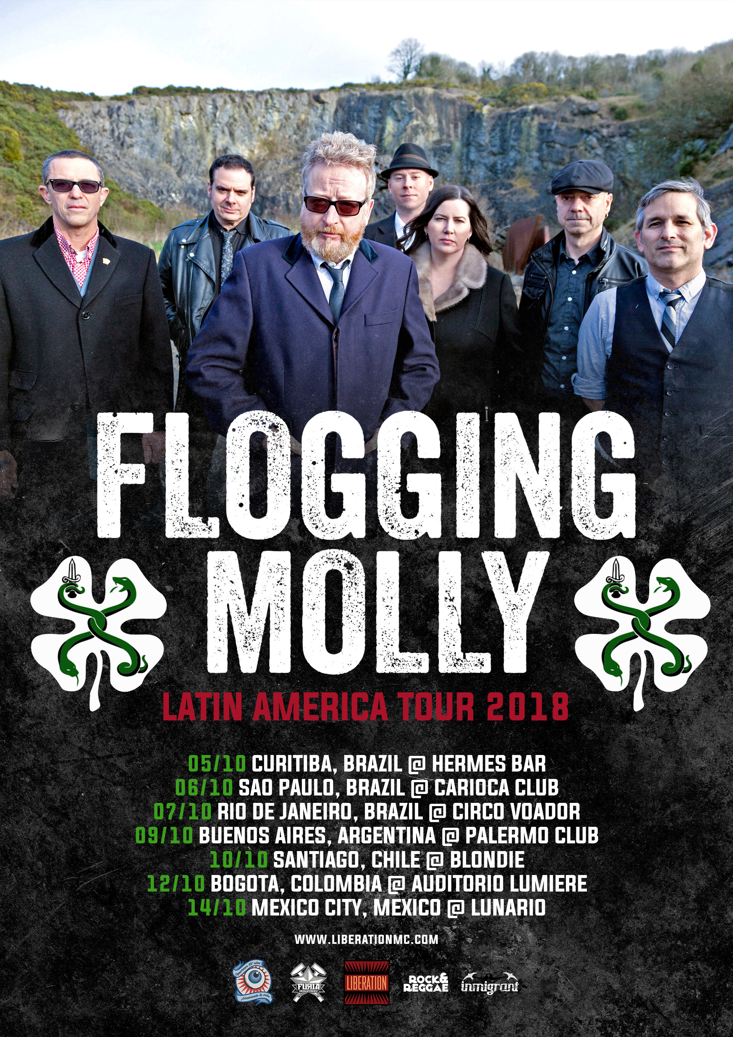 A banda Flogging Molly, um dos mais influentes e respeitados nomes do Celtic Punk, se apresenta no dia 5 de outubro no Hermes Bar. O grupo está em turnê para divulgar seu mais recente álbum, “Life is Good”.