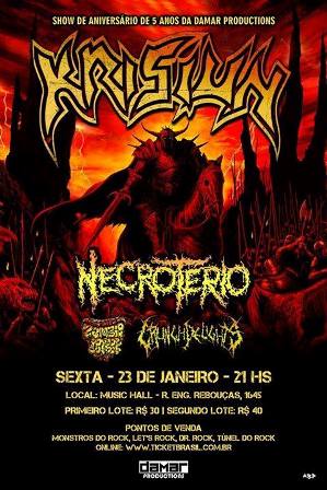 A banda gaúcha Krisiun, considerada um dos nomes mais importantes do Death Metal mundial na atualidade, se apresenta hoje em Curitiba. O show acontece no Music Hall. Os ingressos custam R$ 40 + taxa de serviço de R$ 6 (Pista meia e Pista promo) e podem ser adquiridos no site da Ticket Brasil ou nas lojas Let’s Rock, Túnel do Rock, Monstros do Rock e Dr. Rock.