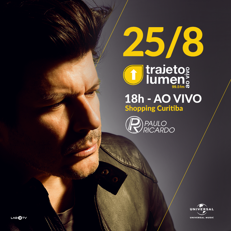 O vocalista do RPM, Paulo Ricardo, se apresenta nesta quinta-feira (25) no Shopping Curitiba. O show faz parte do Trajeto Lumen, projeto da rádio Lumen FM. A entrada para o pocket show é gratuita. Paulo também conversará com os fãs e fará uma sessão de autógrafos.
