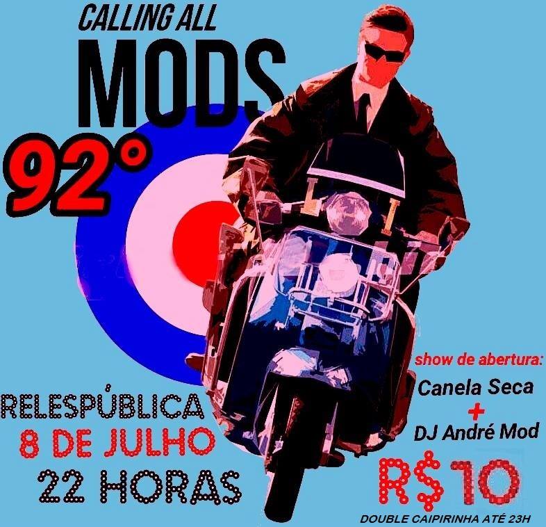 Acontece hoje (8) no 92 Graus o evento Calling All Mods com shows das bandas Relespública e Canela Seca. A discotecagem será do DJ André Mod.