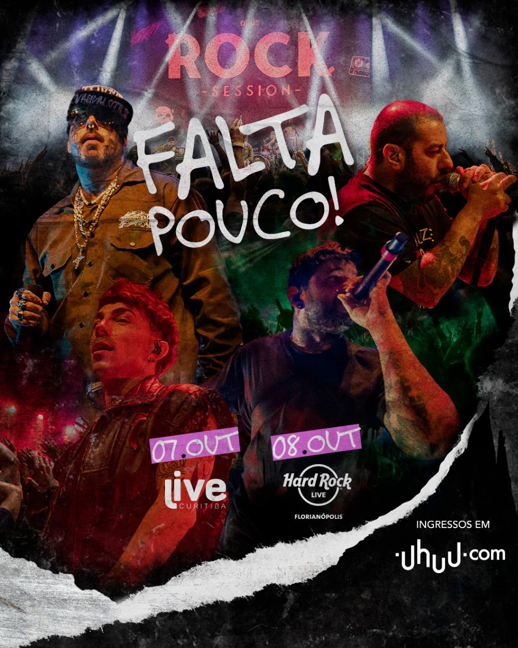 Os ingressos estão à venda na plataforma Uhuu, com valores a partir de R$ 50 (meia-entrada) + taxa administrativa.